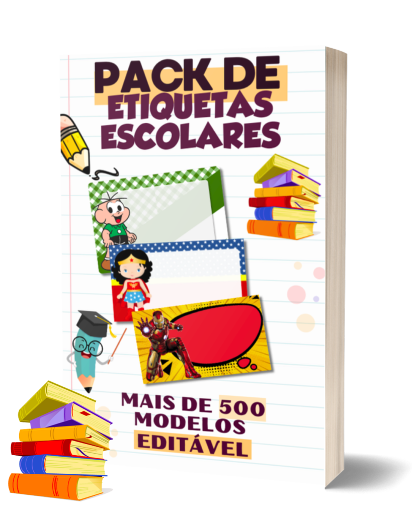Com o nosso "Pack para Etiquetas Escolares", você não precisa começar do zero a cada novo projeto. Oferecemos uma biblioteca completa de artes prontas, criadas especificamente para atender às demandas do período de volta às aulas.
